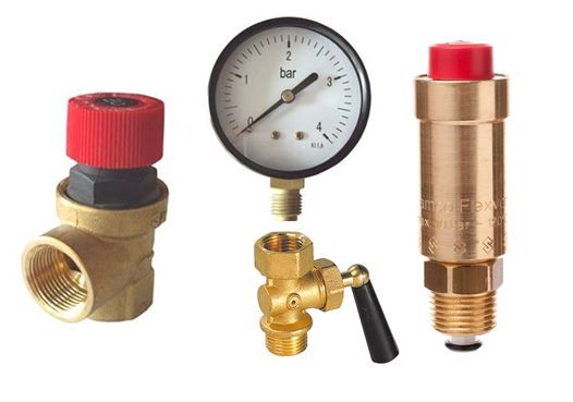 Komplektis kaitseklapp, manomeeter, ventiil ja õhueraldi. Kaitseklapi avanemisrõhk ei tohi ületada seadmele lubatud töörõhku !!!